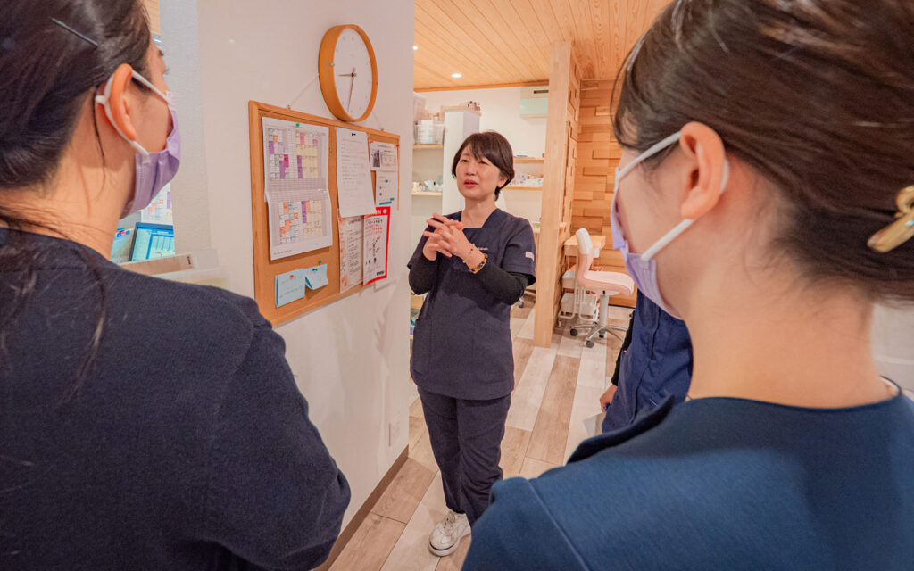 歯科医院は命の現場ではないかもしれません。私たち歯科衛生士も、直接命を救う仕事ではありません。それでも、「あの時予防をしていたから、健康で長く生きられた」と最後に思っていただけるような衛生士でありたいと強く思っています。私は、ただ口の中を掃除するだけの衛生士ではなく、菌のことをきちんと説明し、口の中の状態から体のバランスや内臓の状態まで読み取れるような衛生士でありたいと考えています。実際、当院に新卒や中途で入ってくる衛生士さんたちも、こうした考え方に興味を持つ方が多く、長く勤めてくださっていると感じます。患者さんも、そうした価値を理解して来院してくださっているのだと思います。